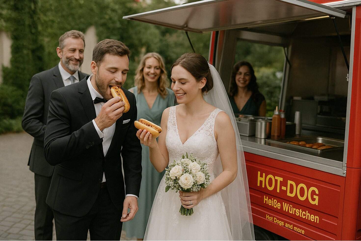 Mit der Hotdog-Schleuder sorgen Sie für den perfekten Start in den Hochzeitstag – überraschend, lecker, locker.